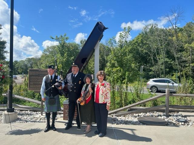 She is pictured with her mother, Dr. Gilda Rorro, 9/11 Cereomony organizer William D. Shields, former Fire Chief of Princeton Fire Company, Princeton Mayor Mark Freda who made remarks during the program, and bagpiper Doug Conners.