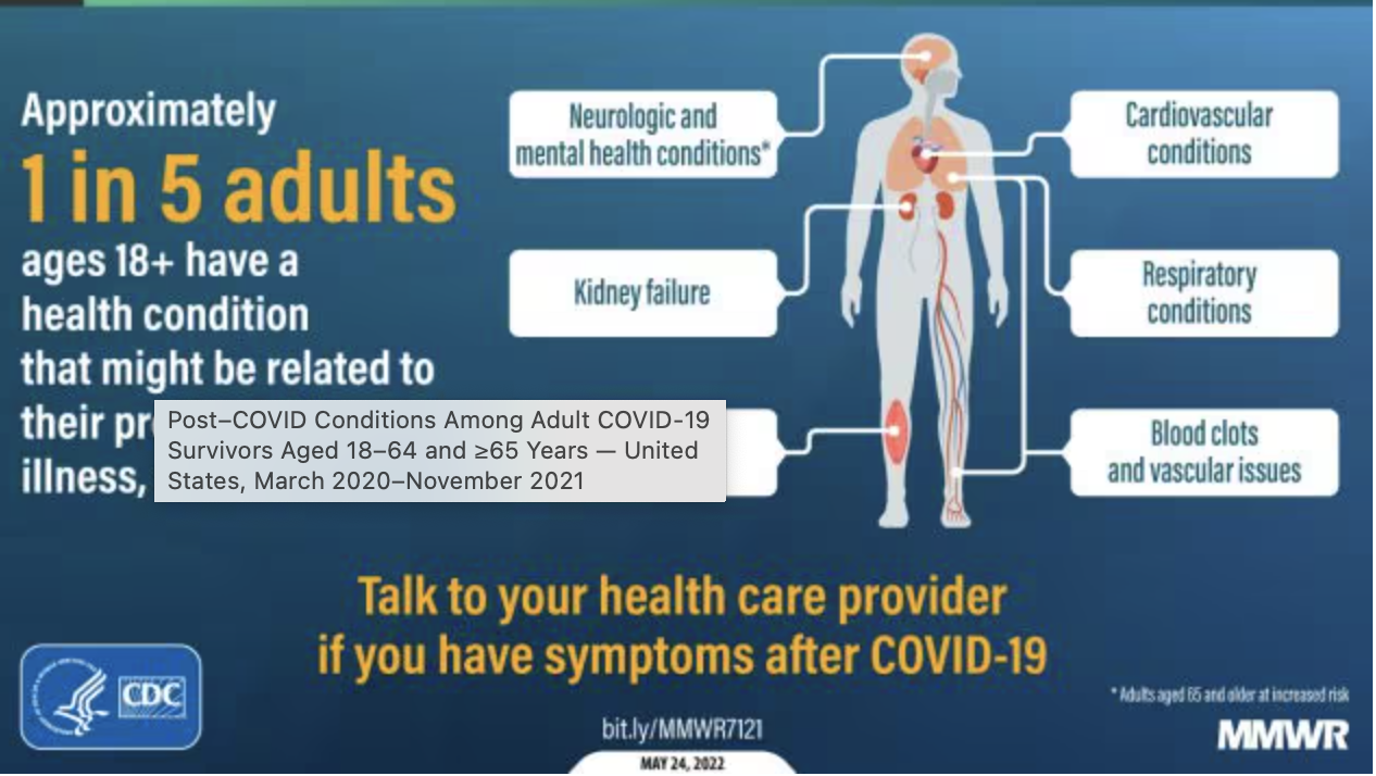 The impact is challenging to assess such the personal and professional toll as well as the consequences for a health care system already overburdened. It is estimated that over 400 million people worldwide and 24 million adults in the US have Long Covid. The global financial impact may be $1 trillion. It is probably an underestimate since some people are not seen by clinicians or are misdiagnosed.