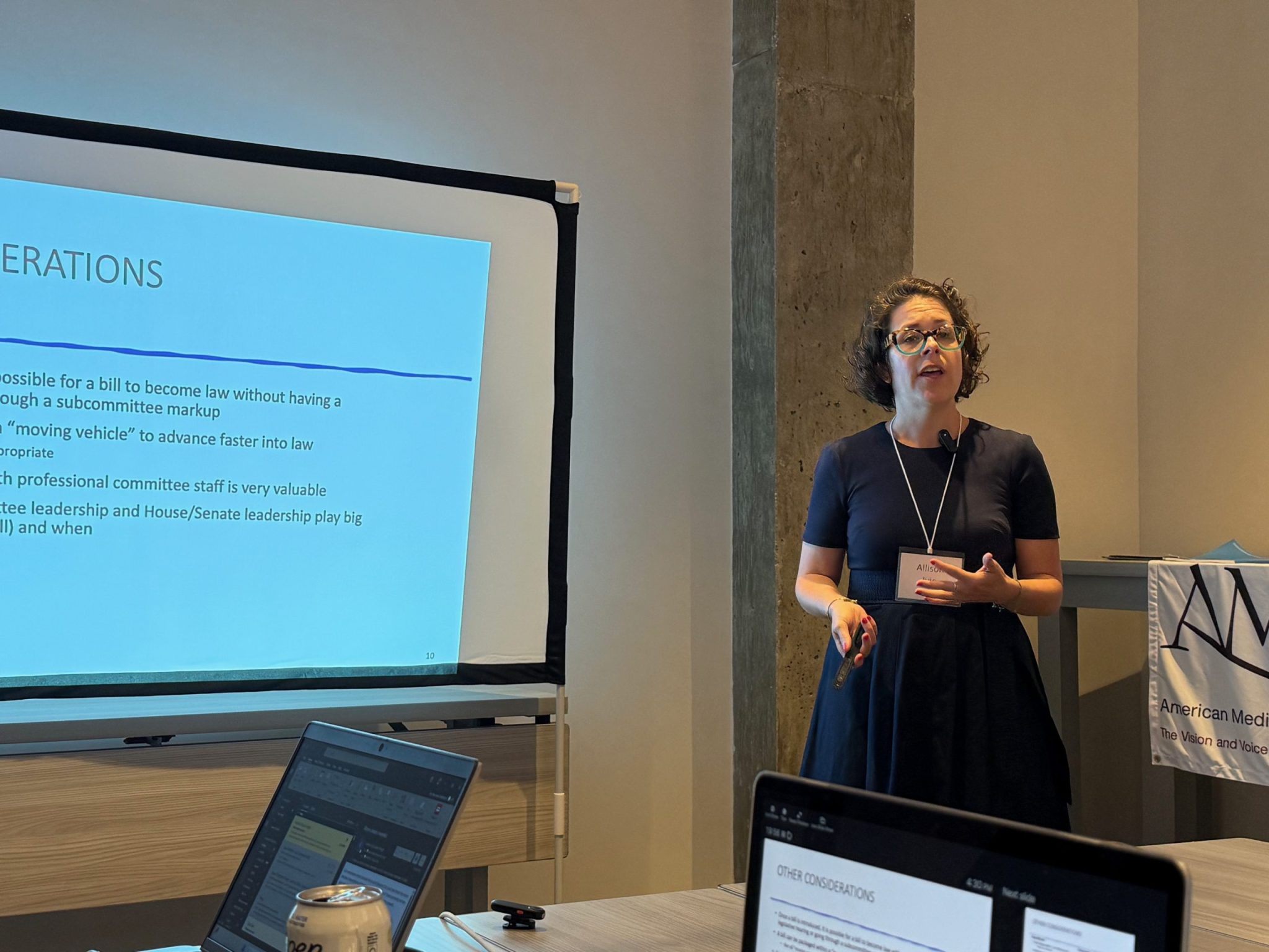 The speakers noted that many bills stall due to time constraints, while those that succeed often move forward as part of larger legislative packages. AMWA’s coalition work, including its role as co-founder of the Reproductive Health Coalition, was cited as an example of how partnerships can build momentum for change.