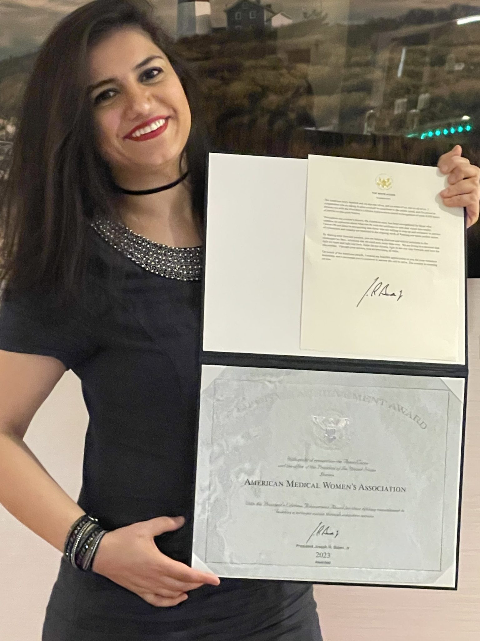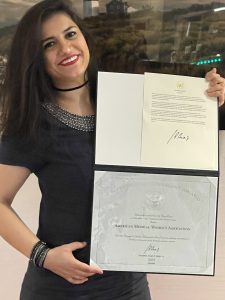 “I was honored to be able to accept this award on behalf of AMWA,” said Tannaz Safari. As a member of many years and female doctor in training, I’ve been blessed to have been surrounded by women who never stopped believing in me, never stopped empowering and inspiring me to reach for levels I didn’t know existed.”
