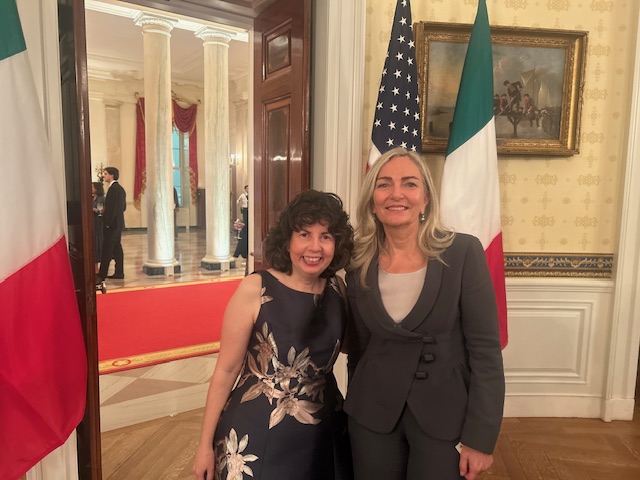 AMWA Leaders Dr. Mary Rorro and Dr. Gilda Rorro were honored to attend the White House Italian American Heritage Reception on October 16, 2024. At the event they had the opportunity to meet Mariangela Zappia, Ambassador of Italy to the United States. She is the first woman to assume the role of Italian Ambassador to Washington. Dr. Mary Rorro also photographed had the opportunity to meet with the conductor and pianist of “The President’s Own” United States Marine Corps Band, who (along with a violinist) accompanied her as she performed her original song “L’Italia!” at The White House.
