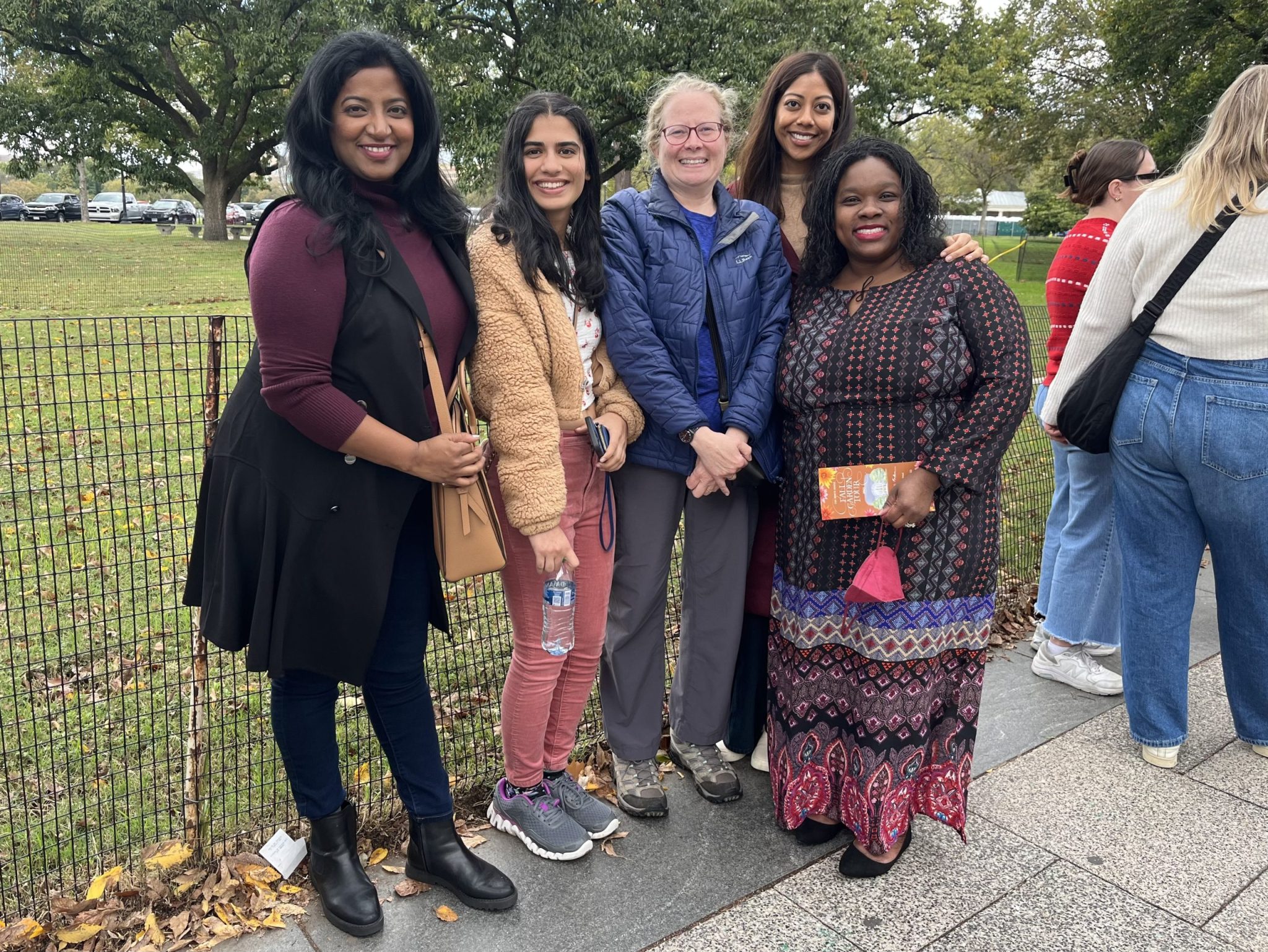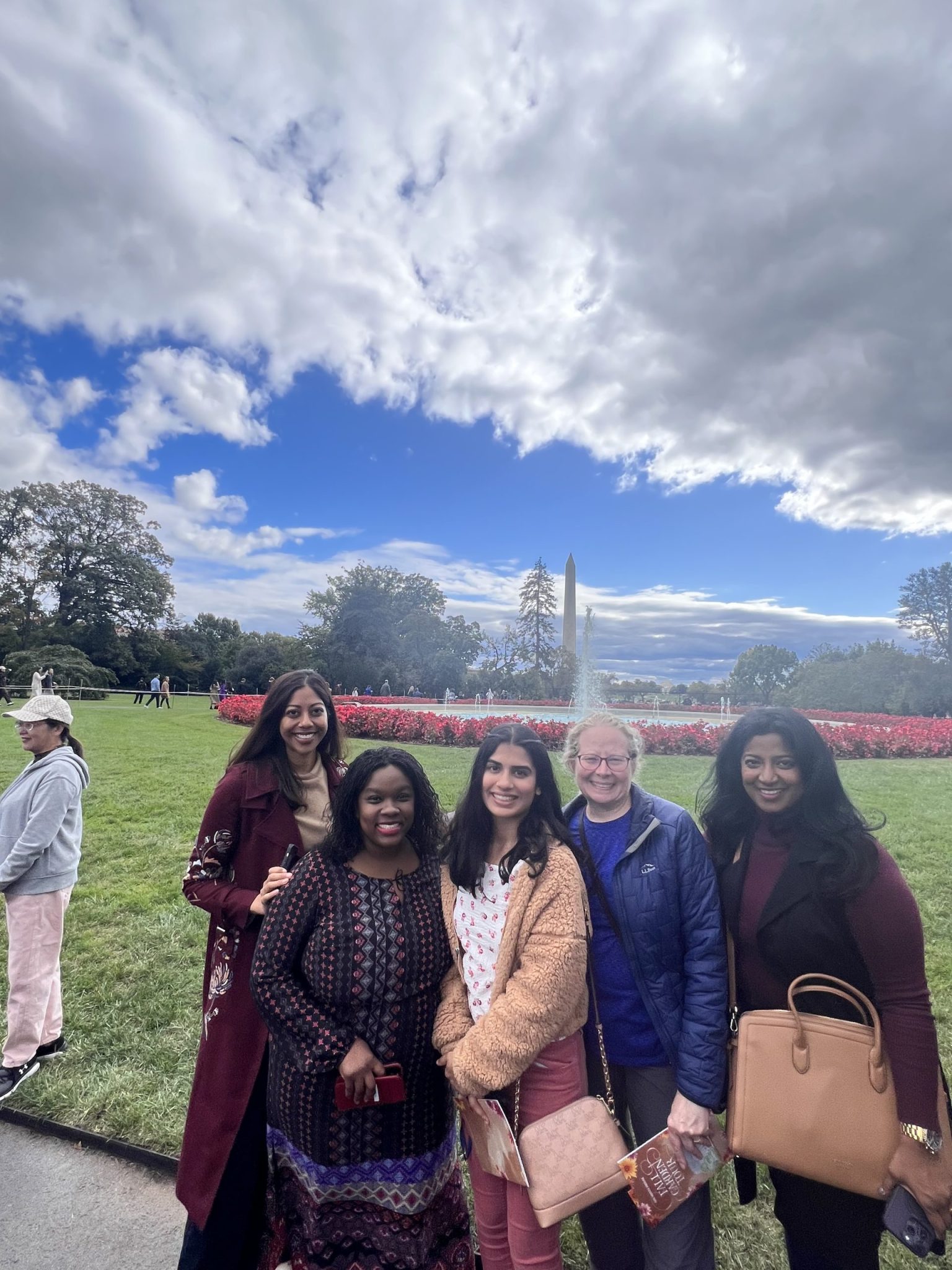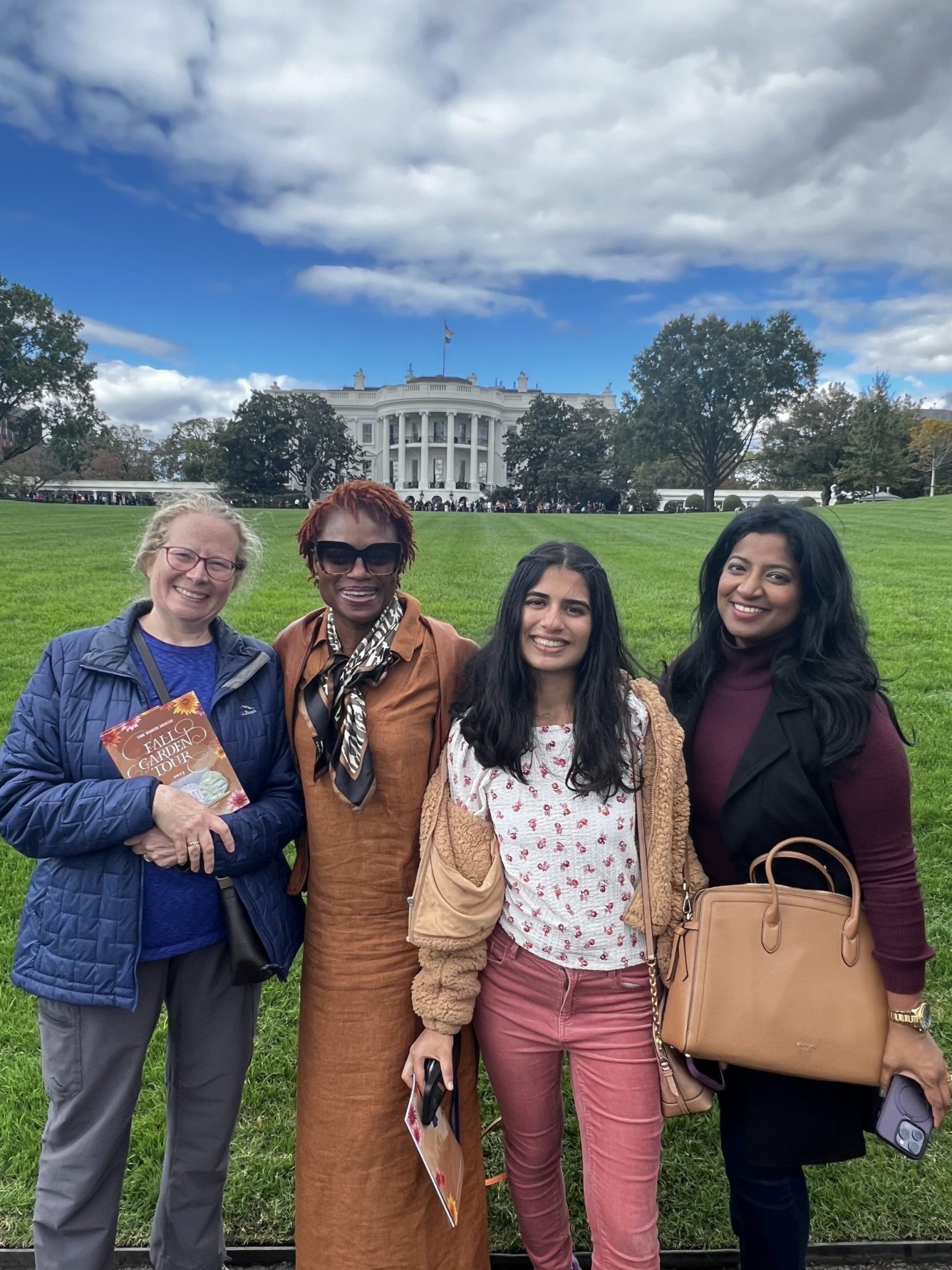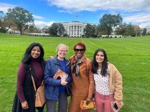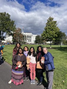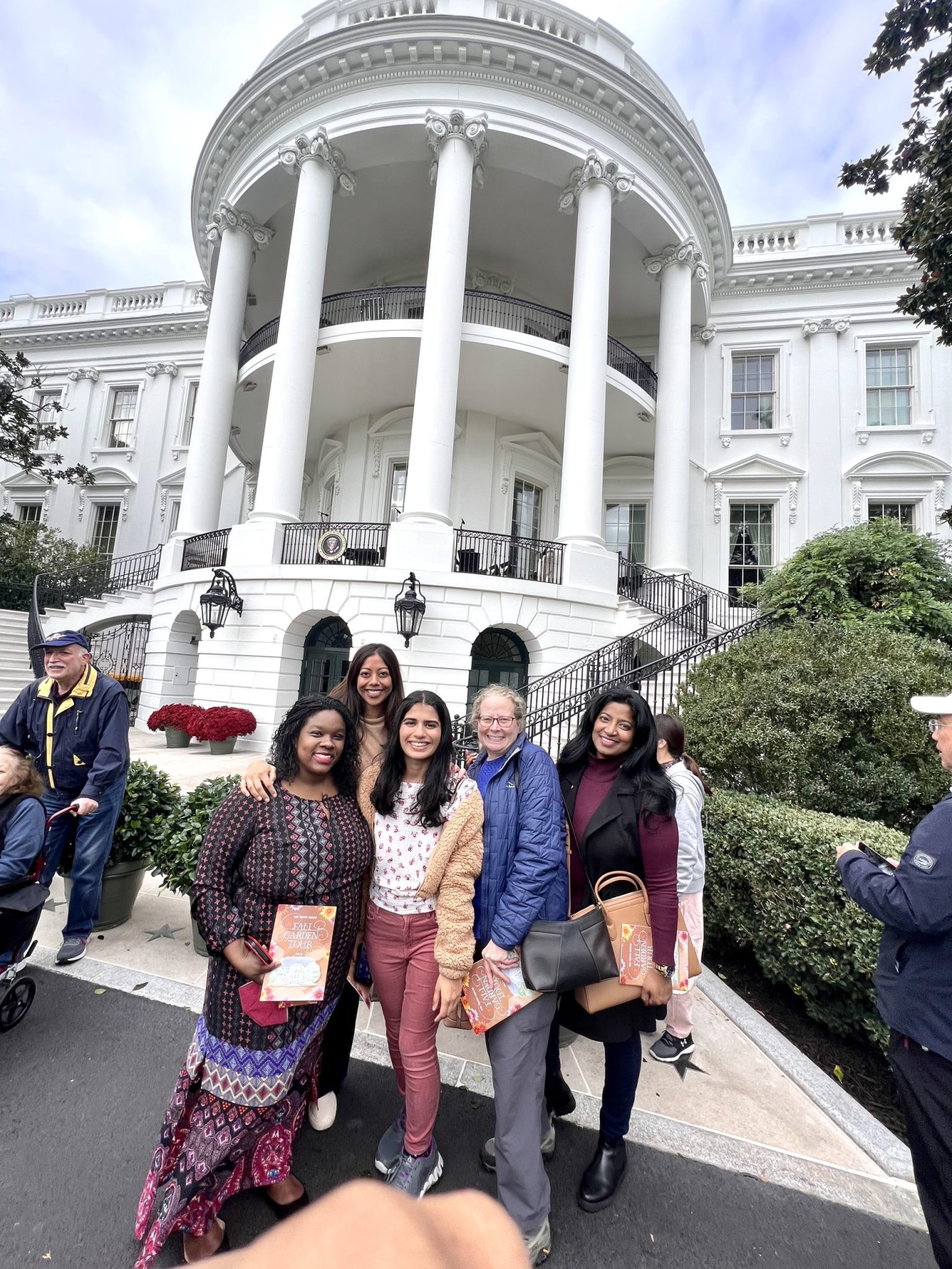 Pictured below are the AMWA members who attended the Fall Garden Tour — Dr. Karen Jerome, Dr. Tiffani Bell Washington, Dr. Neelima Tummala, Dr. Leslie-Ann Williams, Dr. Amber Barak, Dr. Anju Likhitesh, and Perisa Ashar – coming from Washington DC, Maryland, Virginia, Massachusetts, and North Carolina. It was the perfect day to meet and network with other AMWA members – and what better place to gather than the White House Gardens?