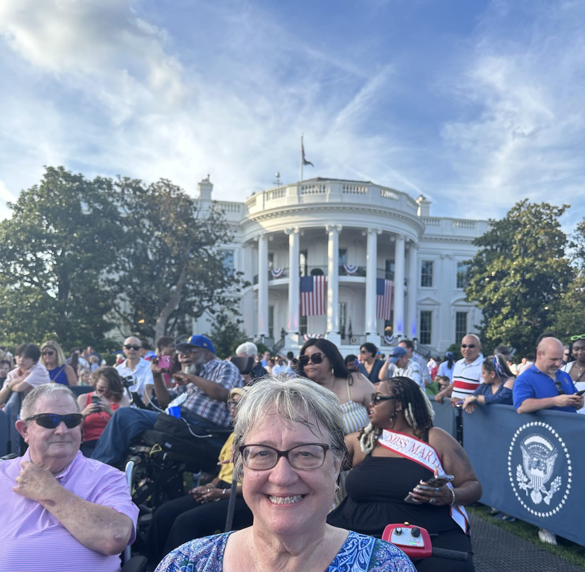 “I was invited to a party on the White House lawn, and I hopped on a plane and went! It was quite the picnic! Red, White, and Blue party favors with sunblock and lip protector, snacks, music by Osborn brothers, fireworks over the Washington Monument…”