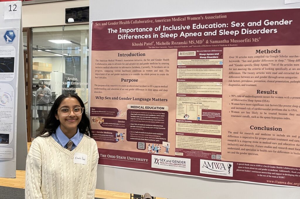 My name is Khushi Patel, and I am a current fourth-year student at the Ohio State University. I am graduating this May with a Bachelor of Arts degree. I majored in Women, Gender, Sexuality Studies and minored in Neuroscience. After graduating, I plan to take a gap year before applying to medical school. AMWA and SGHC have allowed me to foster a space with both my passion for medicine and advocacy for marginalized individuals. My experience at Ohio State University’s Spring Research Festival was a wonderful opportunity to share the research I have been working on for nearly two years. This was one step forward in opening the door for inclusion in education and beyond. I am honored and grateful to be a part of this movement.