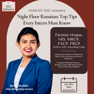 Dr. Farzana Hoque will provide insights to new interns about the Night Float, including what to do, what a hand-off is, and how to organize during the Night Float, as well as Rapid Responses.