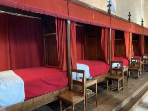 Second – the Hospices de Beaune, Hôtel-Dieu, a former almshouse from the Middle Ages serving the poor and disadvantaged. From the carefully designed “sick room” with two rows of beds and privacy drapes to the close proximity of rooms for worship and spiritual healing, Hôtel-Dieu presented an innovative model for healthcare far ahead of its time. The Hospices de Beaune is about 2.5 hours away from Geneva, Switzerland.