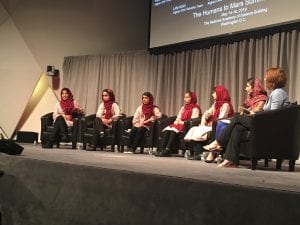 Special guest speakers included the famed Afghan Girls Robotics Team (who had been hosted by AMWA in 2018), Roya Mahboob, CEO of Digital Citizen Fund and the first woman tech CEO from Afghanistan, and Keri Kukral, CEO of Raw Science. The team includes 5 girls, Fatemah Qaderyan, Lida Azizi, Somaya Faruqi, Saghar Salehi, and Kawsar Roshan.