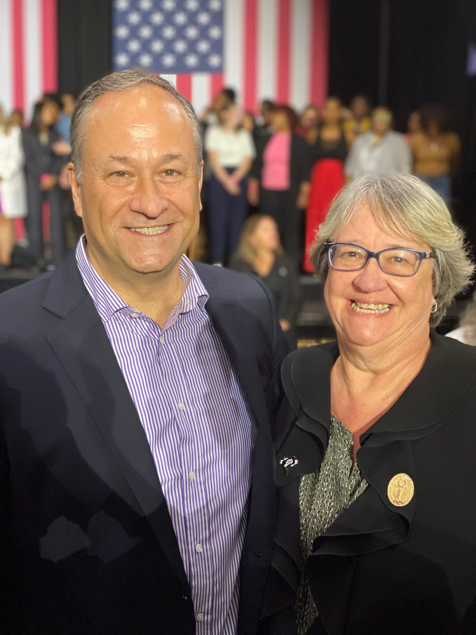 - “I was honored to represent AMWA at this historic event. The power in the room was palpable, and we left inspired by the Vice President’s words to stand for and fight for reproductive justice. I also appreciated meeting and speaking with Second Gentleman Doug Emhoff – a true he for she ally. – Dr. Roberta Gebhard (AMWA President 2019-2020)