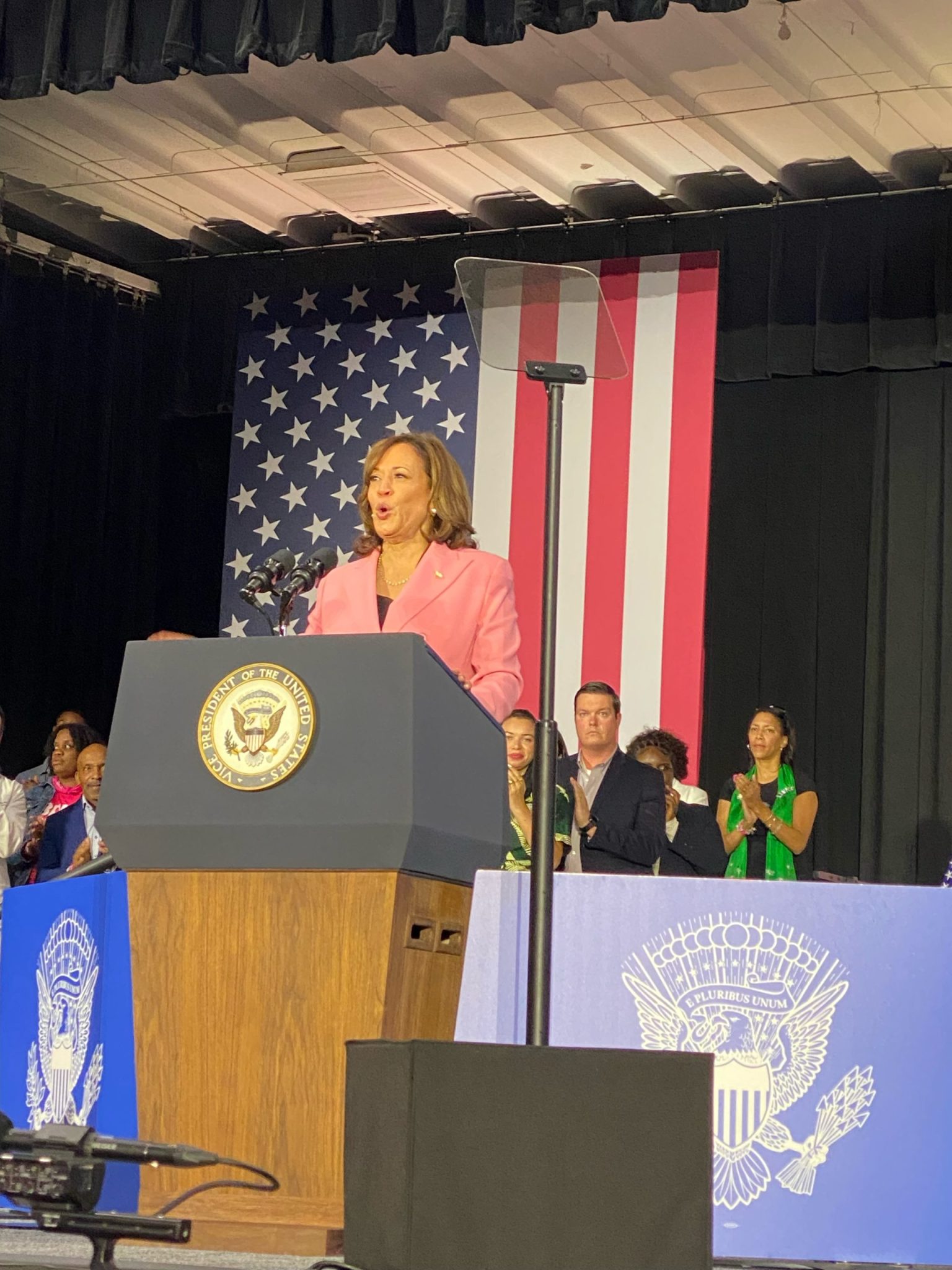 Introducing Vice-President Kamala Harris was Dr. Amy Bryant, a board-certified OB/Gyn physician who spoke of the roller coaster of medical care as a result of recent legislations and the consequences of abortion bans, especially the impact in communities of color already suffering poor maternal and infant health outcomes.