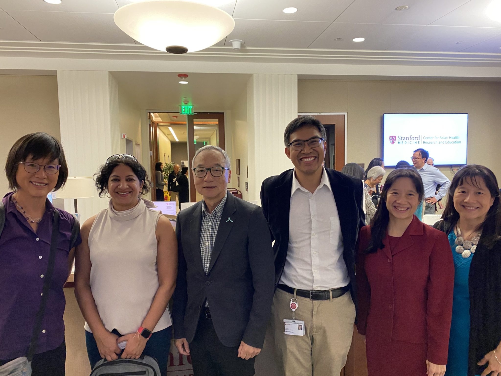 AMWA Executive Director Dr. Eliza Chin and GME Committee Co-chair Dr. Joan Lo represented AMWA in the 5th Anniversary celebration of Stanford CARE (Center for Asian Health Research and Education) on Thursday, September 28 at the Stanford Health Library. Stanford CARE was founded by Dr. Latha Palaniappan and Dr. Bryant Lin with the goal of improving “the health of Asians everywhere by ending health disparities through increasing knowledge, empowering education, and positively impacting Asian clinical care.” The vision of Stanford CARE is to serve as the premier academic leader in Asian precision health. In the past 5 years, the institute has made impressive accomplishments within four core initiatives, cardiovascular disease and diabetes, cancer, longevity, and mental health with the goal of increasing research and knowledge in Asian health, improving the delivery of health care for Asians, and educating patients, providers, and the community about the health needs of Asians. The work of Stanford CARE has included community programs and international collaborations. Sally Shan Li is the executive director of the Center.