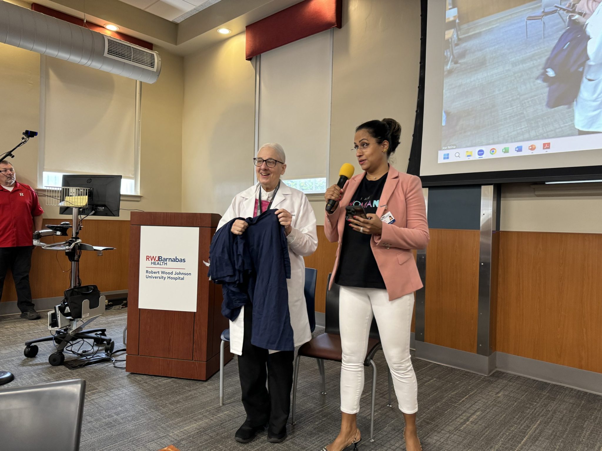 The event began with opening remarks by Dr. Bachmann, Christina McGinnis and Alyssa Granito, RWJMS AMWA Student Leaders, and Serena De Souza, RWJMS Women’s Health Institute Intern. Later in the program Dr. Maloney-Patel, RWJUH Medical Staff President, and Dr. Christopher Gilligan, the RWJUH Chief Medical Officer and Chief Quality Office also spoke to attendees.