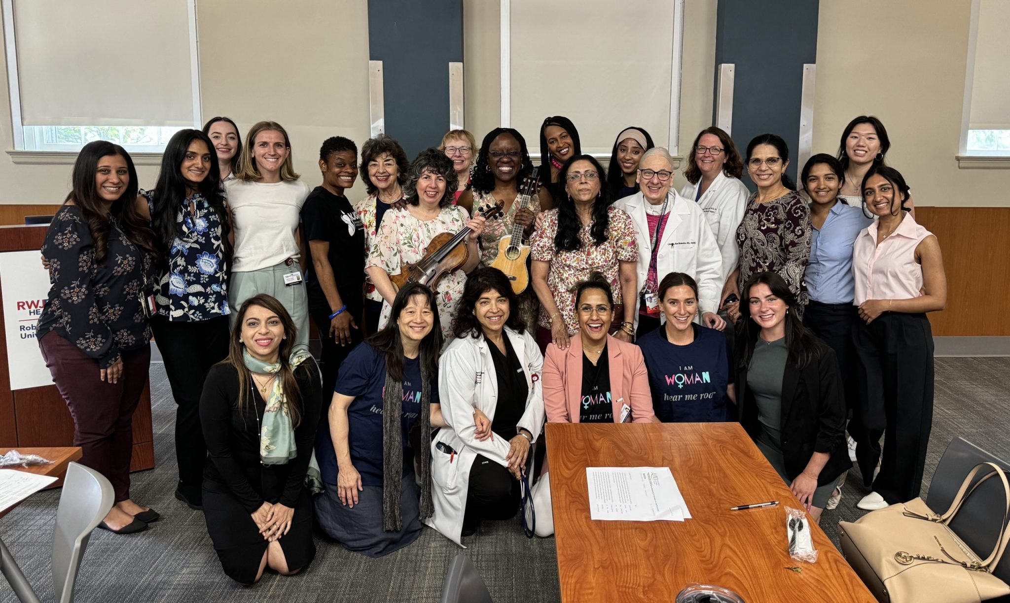 The AMWA Music and Medicine Working Group partnered with Rutgers Robert Wood Johnson Medical School (RWJMS) and Robert Wood Johnson University Hospital (RWJUH) for the event, Empowering Mentorship: Championing Diversity, Equity, Inclusion, and the Arts in Medicine. The event celebrated the diverse mentoring pathways leading to medical leadership and the medical humanities and medicine. The event was organized by AMWA Music and Medicine Co-Leaders, Dr. Gloria Bachmann, Director of the Women’s Health Institute at Rutgers and Dr. Mary Rorro, a Veterans Affairs physician, along with a steering committee of both physicians and students, which included leaders of the RWJMS AMWA student group.