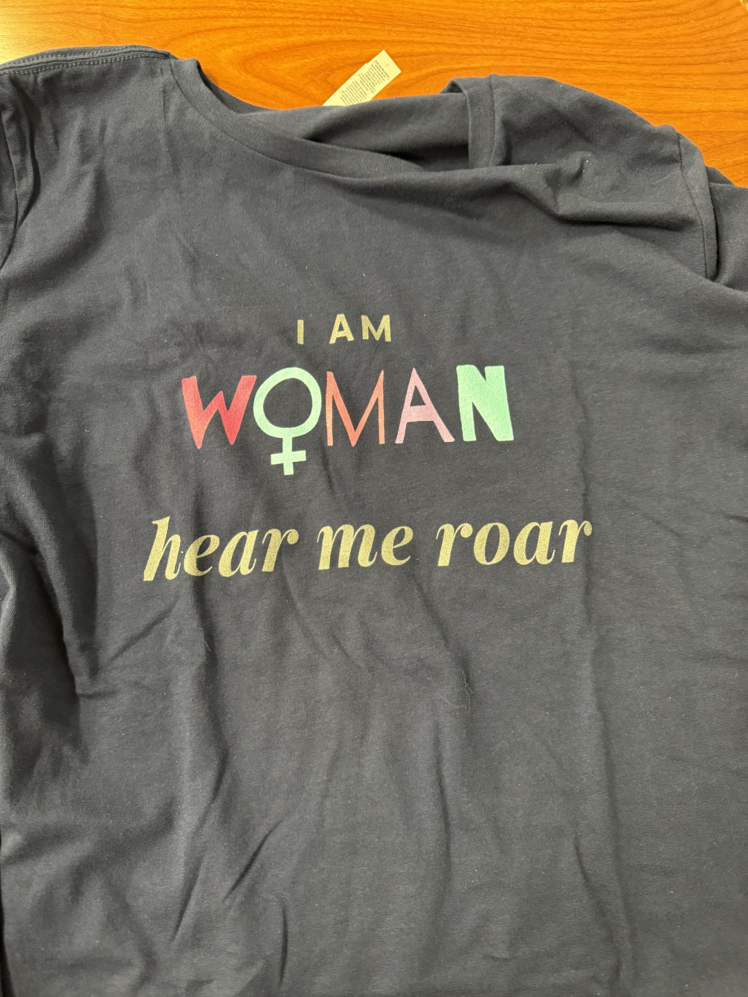 - Ranjita Sengupta, Bharati Deka, Kusum Punjabi, and Gloria Bachmann led a group on stage for a lively rendition of “I Am Woman” by Helen Reddy, sporting T-shirts with the slogan “I am Woman, Hear Me Roar” designed by Dr. Sengupta.