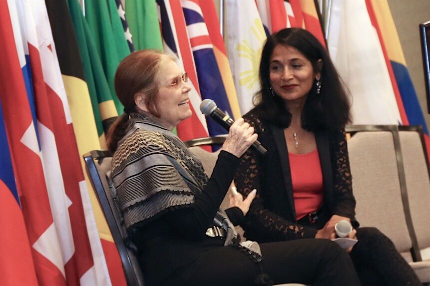 The opening ceremony opened with welcomes from MWIA President Dr. Bettina Pfleiderer and AMWA President Dr. Roberta Gebhard. A history panel with MWIA Presidents Dr. Bettina Pfleiderer, Dr. Afua Hesse, and Dr. Kyung Ah Park summarized MWIA’s legacy over the past century and recognized on stage over 40 national association leaders from across 6 continents, a powerful display of unity among women physicians from diverse cultural backgrounds. Following this presentation was an inspiring fireside chat with prominent leaders in healthcare within the U.S.— Dr. Danielle Ofri, award-winning physician author; Dr. Darilyn Moyer, EVP and CEO of the American College of Physicians; and Dr. Helen Burstin, EVP and CEO of the Council of Medical Specialty Societies — moderated by Laurie Cooke, CEO of the Healthcare Businesswomen’s Association. The Linda Brodsky Memorial Lecture was delivered by TIME’S UP Healthcare founding members Dr. Esther Choo and Dr. Dara Kass who spoke on the need to end gender discrimination and harassment within the healthcare sector. They were joined on-stage by the larger group of founding members, all wearing signature black to represent the TIME’S UP movement in a statement of solidarity. The morning session culminated with an unforgettable conversation with renowned activist, author, and feminist, Ms. Gloria Steinem, hosted by AMWA Past President Dr. Gayatri Devi. The privilege of learning “life lessons from Gloria Steinem” and hearing firsthand her perspectives on gender, equity, and women’s leadership were a highlight of the conference.