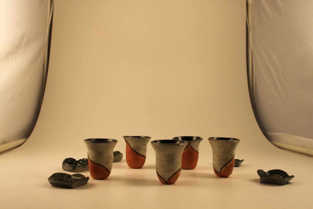 My earlier works have traditionally feminine element to them; these pictures are of vessels that resemble the Turkish teacups, sometimes called “tulip teacups.” The pictures are angled to emphasize the smoothness of the teacup rims, the soft golden hues of colors chosen, and the symmetry of each teacup. The tulip shape emphasizes their innate femininity. These teacups are used to represent a preclinical students willingness to drink in the knowledge presented before them. On the inside of the teacups, the darker purples and red gives a physical form to the inner turmoil and smoldering nature of the earlier phase of transformation. These vessels were purposely made using basic pottery techniques and using a regular electric kiln.