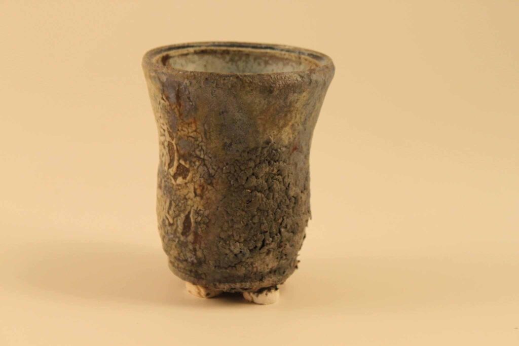 This vase has a considerably rougher surface, almost resembling the scales of dragon. As I have mentioned, I have been experimenting with different firing techniques to harden pottery; this rough quality was accomplished by using a wood-fire kiln, where an actual wood fire is made and the ash created is what merges with the clay to make the scales. Instead of using an object of utility, like a teacup used to drink tea, I chose to create a decorative half-vase-half-bowl, which arguably has only one utility—to be decorative. My hope is to use this fact to address a common fear a lot of my peers have voiced: in the process of transformation, we become something in the middle, something with no real use outside of existing and not worth the sacrifices made. And, while this fear may be a possibility, that so long as we continue to work and grow we will become what we wanted to be, which will be represented in the installments I work on this coming year.