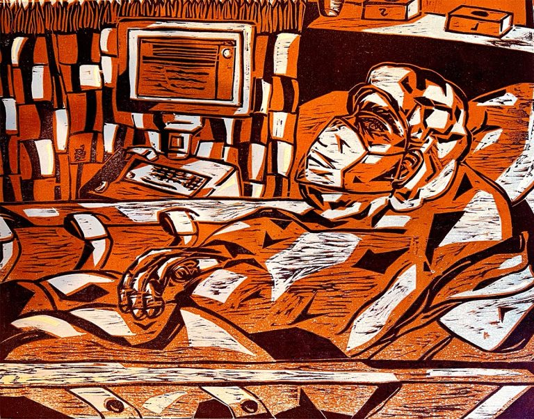 “Through my artwork, I hope to uncover parallel dialogues in surgery and printmaking—positive and negative space, traditional and modern tools, patient and surgeon. Surgery and printmaking undeniably parallel one another, each revealing the potential to create within spaces of destruction. In surgery, I deconstruct the human body to heal, maintaining precarious, yet critical tension and counter-tension of human tissue. As an artist, I carve into a woodblock or etch a copper plate to create images exposing this tension and counter-tension through visual dialogue. My artwork aims to reconcile these delicate parallels and oppositions.”